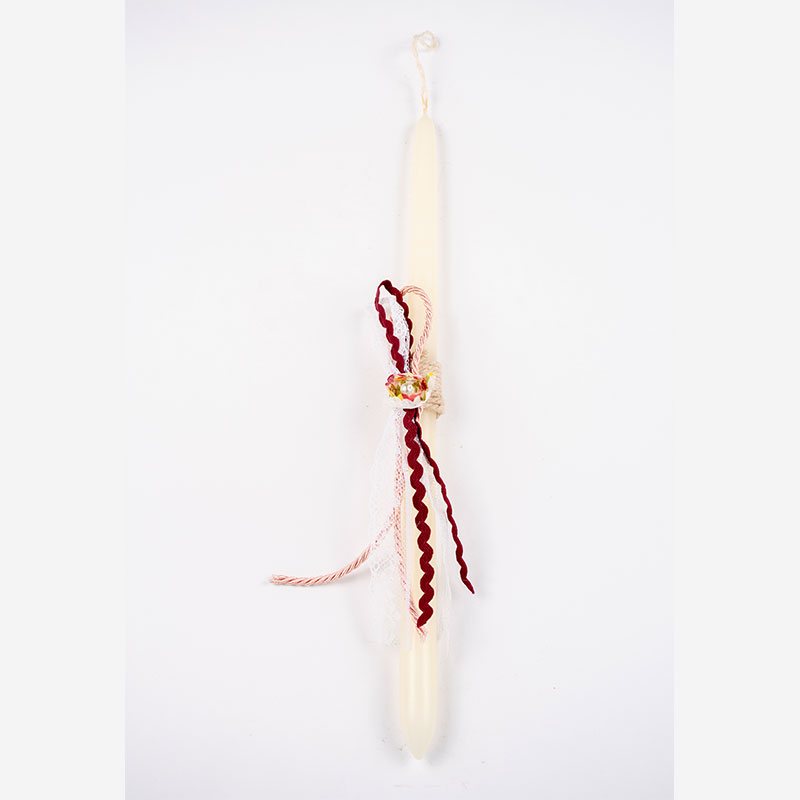 Αρωματική λαμπάδα λεπτή 22cm με υφασμάτινο λουλούδι με πέρλα