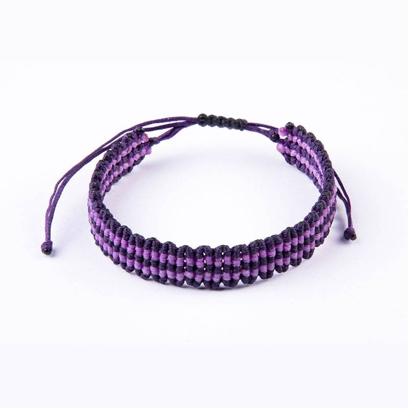 Βραχιόλι μακραμέ δίχρωμο με μωβ - ανοιχτό μωβ κερωμένο κορδόνι, με αυξομείωση