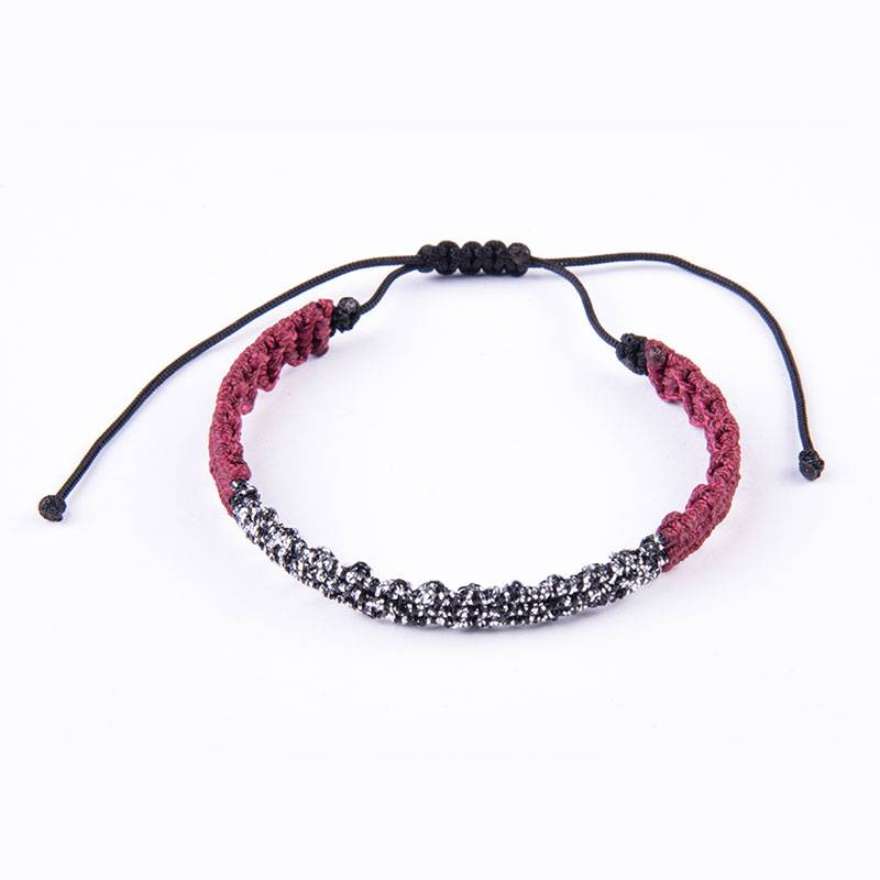 Βραχιόλι μακραμέ μπορντώ - μαύρο ασημί κερωμένο κορδόνι, κλείνει με αυξομείωση