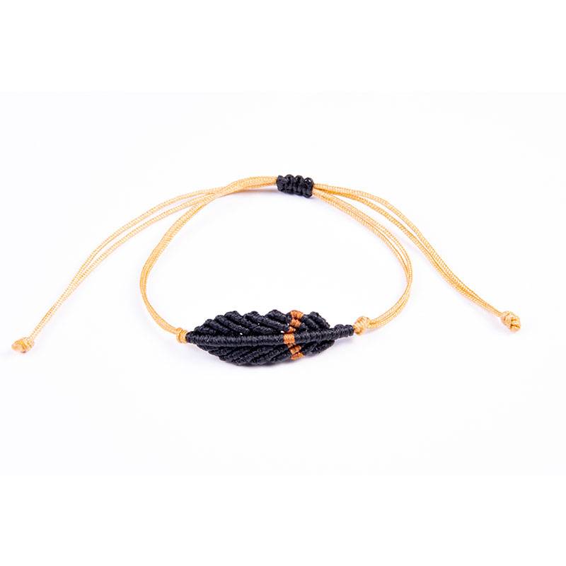 Βραχιόλι μακραμέ "feather" μαύρο-ταμπά σε κορδόνι με αυξομείωση