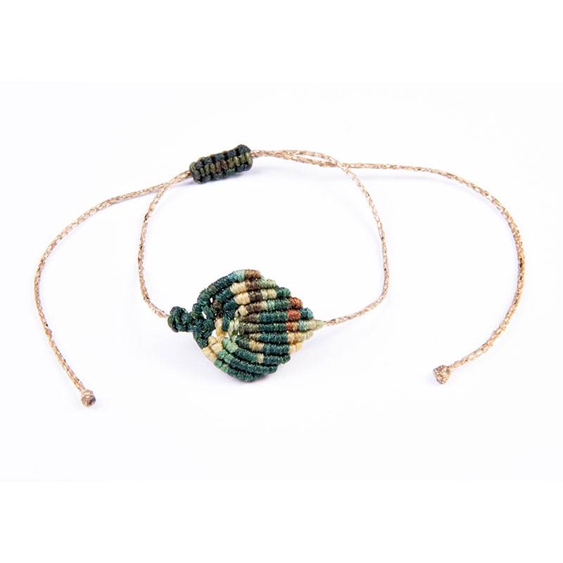 Βραχιόλι μακραμέ "leaf" πράσινο multicolor σε κορδόνι με αυξομείωση