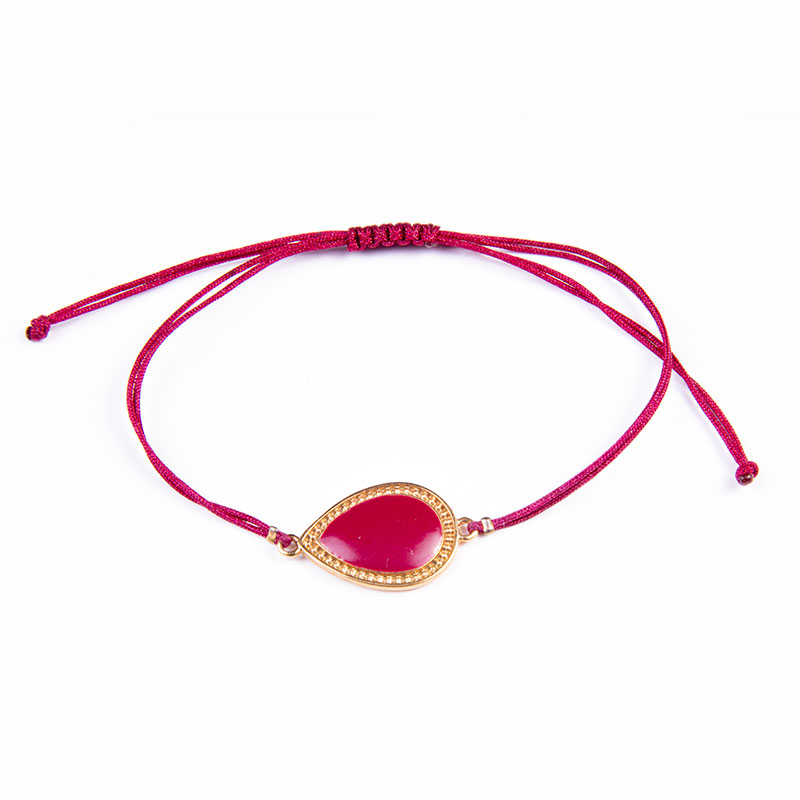 Βραχιόλι με επίχρυσο μοτίφ 24Κ σταγόνα με κόκκινο σμάλτο σε σκουρο κόκκινο κορδόνι, με αυξομείωση