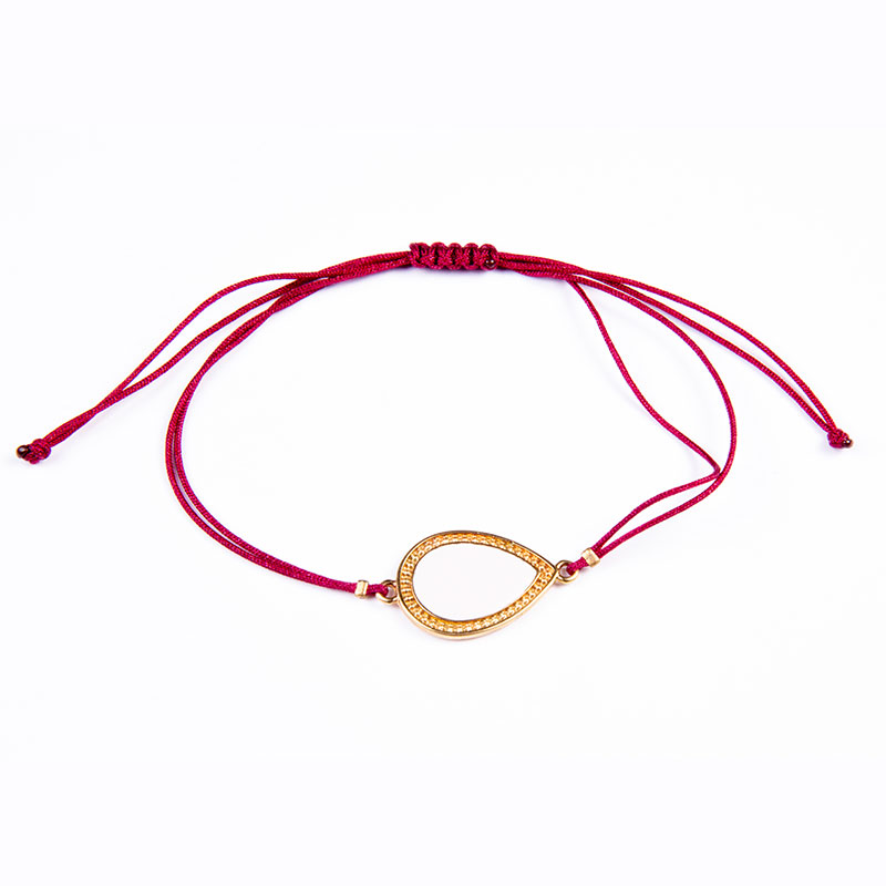Βραχιόλι με επίχρυσο μοτίφ 24Κ σταγόνα με λευκό σμάλτο σε σκούρο κόκκινο κορδόνι, με αυξομείωση
