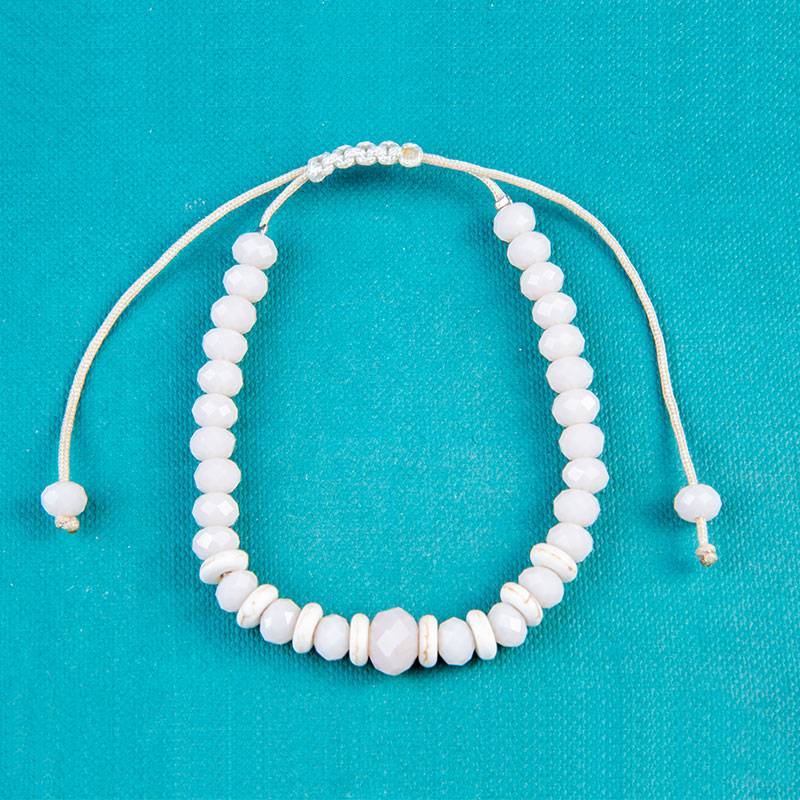 Βραχιόλι με κρυστάλλινες χάντρες, λευκές 6mm, 8mm με ροδέλες χαολίτη σε λευκό, με αυξομείωση