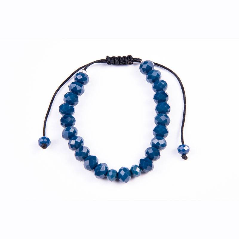 Βραχιόλι με κρυστάλλινες χάντρες, sea blue 8mm σε κερωμένο κορδόνι με αυξομείωση