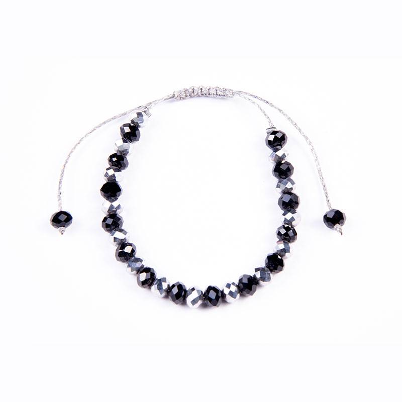 Βραχιόλι με κρυστάλλινες χάντρες μαύρες και ασημί 8mm, 6mm σε ασημένιο κορδόνι με αυξομείωση