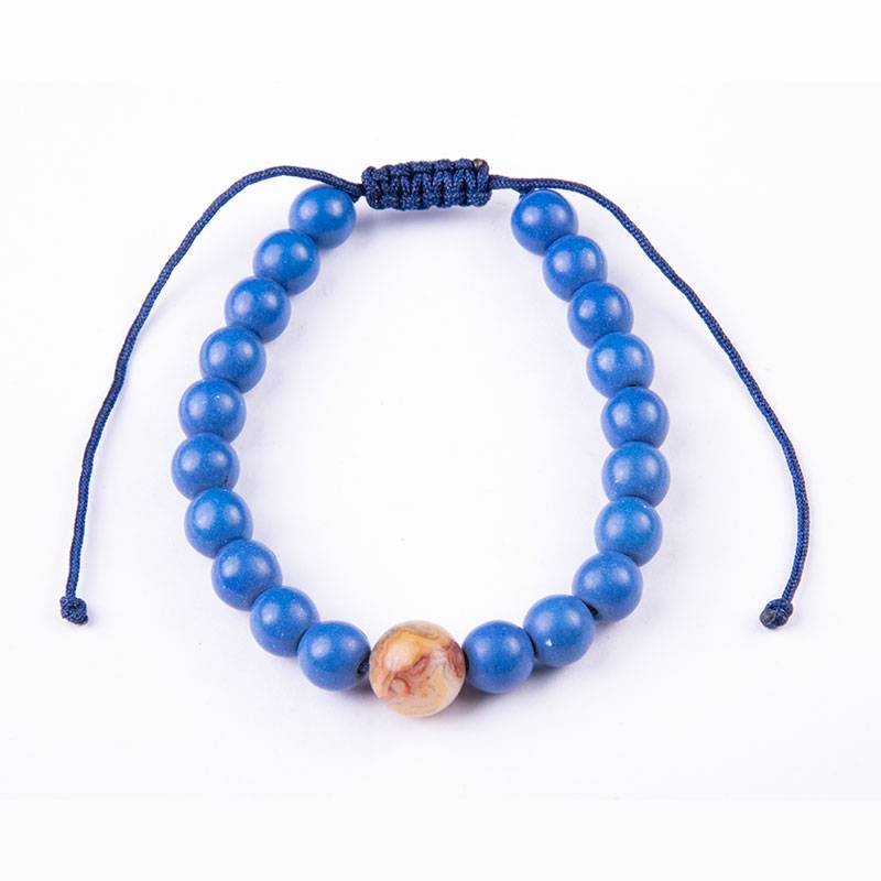 Βραχιόλι με μπλε χαολίτη και χάντρα marble 8mm, κλείνει με αυξομείωση