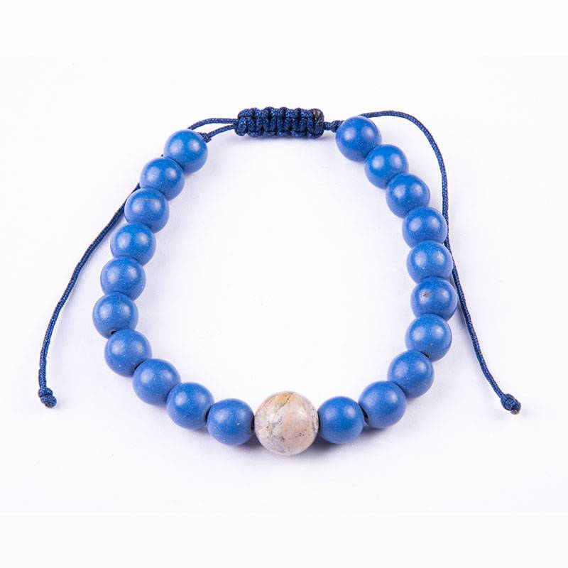 Βραχιόλι με μπλε χαολίτη και χάντρα marble 8mm, κλείνει με αυξομείωση