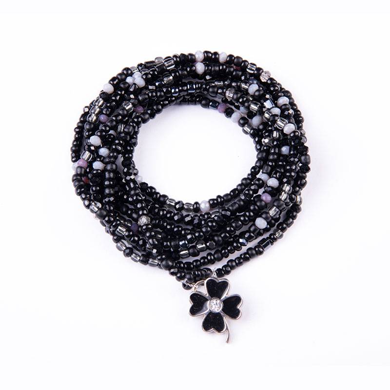 Βραχιόλι πολυμορφικό wrap με γυάλινες χάντρες μαύρες, γκρι διάφανες, κρυσταλλάκια μαύρα- γκρι, σε κορδόνι σιλικόνης