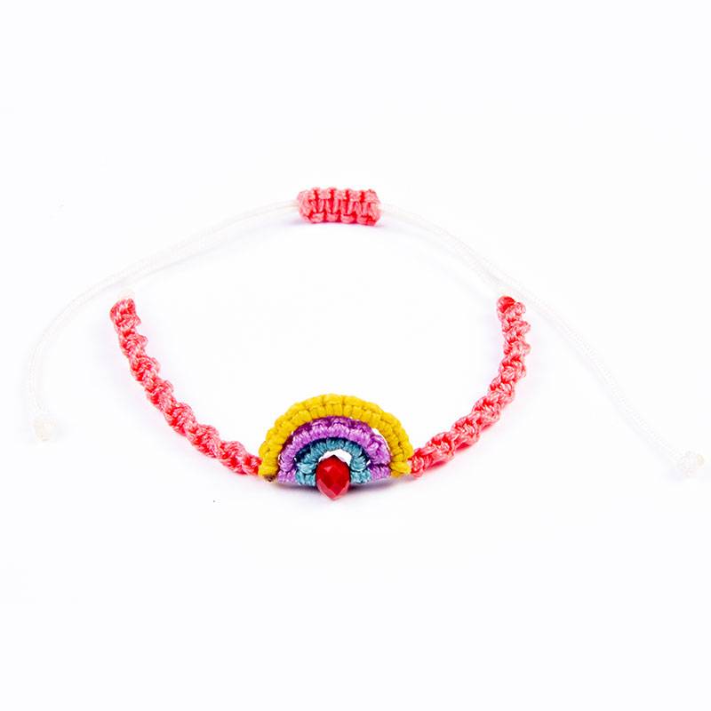 Βραχιόλι πολύχρωμο ουράνιο τόξο με χάντρα κρυστάλλινη και κοραλλί μακραμέ dna, με αυξομείωση