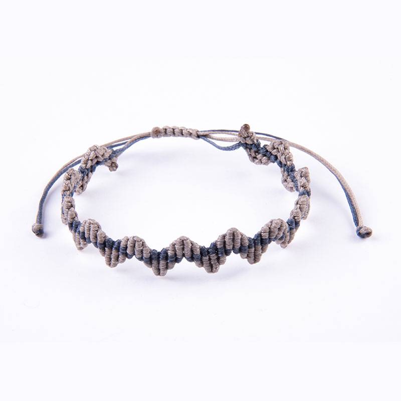 Βραχιόλι zig zag γκρι -μπλε με κερωμένα κορδόνια, κλείνει με αυξομείωση