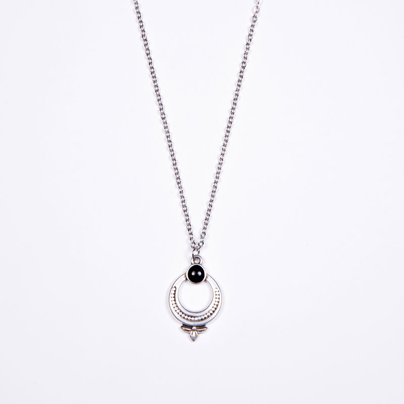 Κολιέ με ατσάλινη αλυσίδα και έθνικ μοτίφ επάργυρο με λεπτομέρεια μαύρο σμάλτο