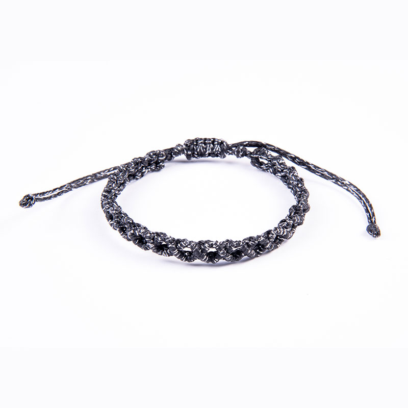 Μακραμέ βραχιόλι μαύρο ασημί με αυξομείωση