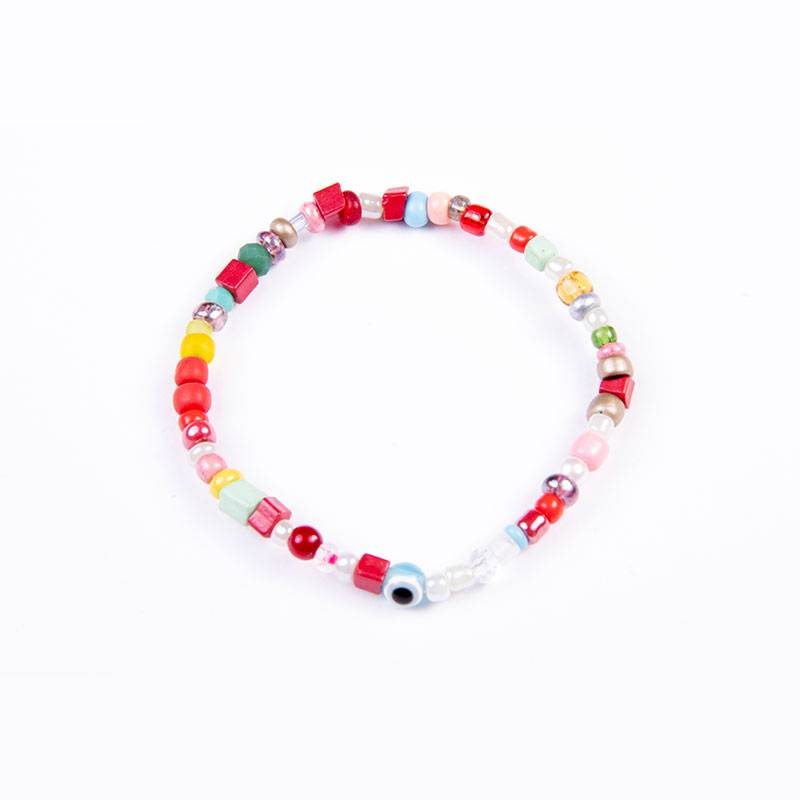 Παιδικό βραχιόλι με γυάλινες χάντρες και ματάκι multi 4 σε κορδόνι σιλικόνης