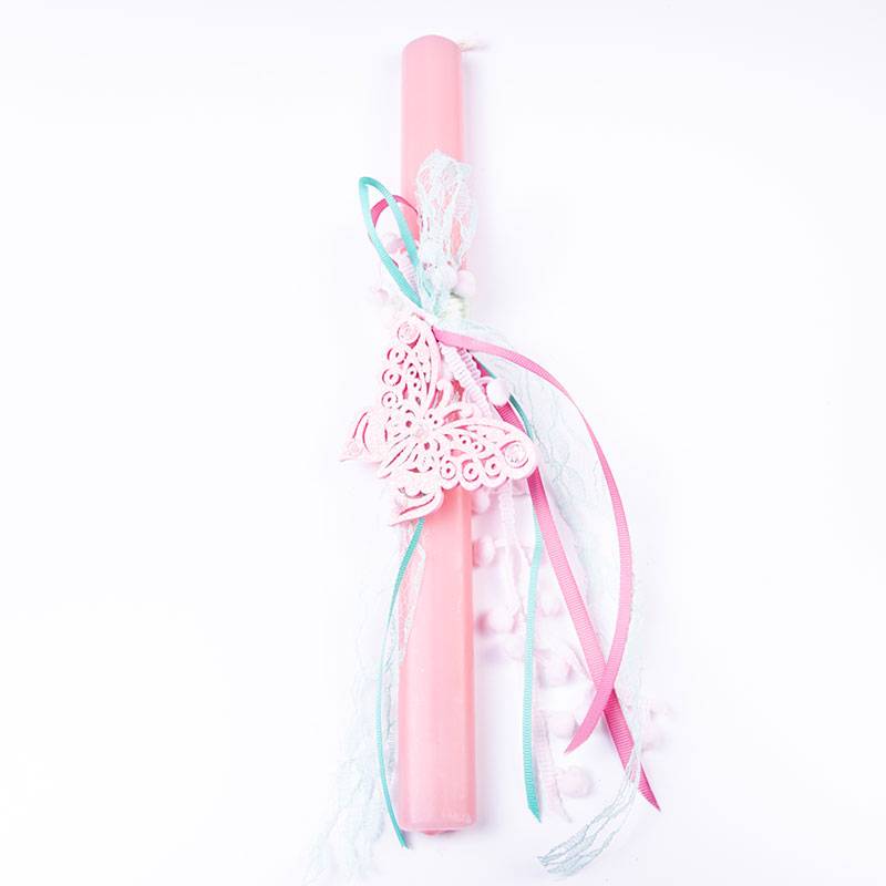 Πασχαλινή λαμπάδα 33cm με ξύλινη πεταλούδα ροζ