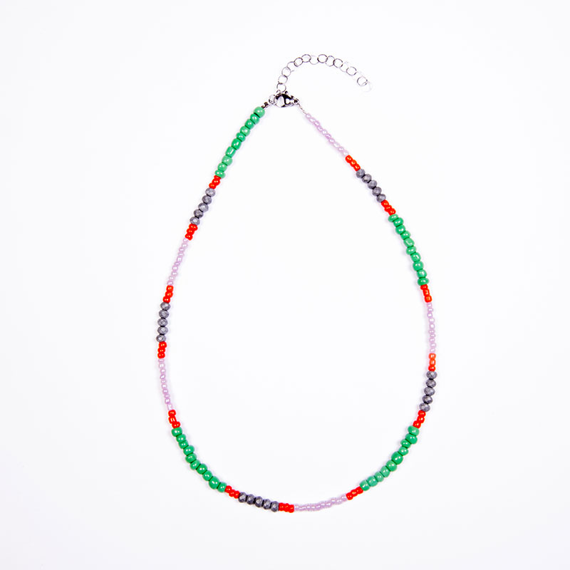 Πολύχρωμο κολιέ με γυάλινες και κρυστάλλινες ματ χάντρες 3mm και 4mm με ατσάλινο κούμπωμα