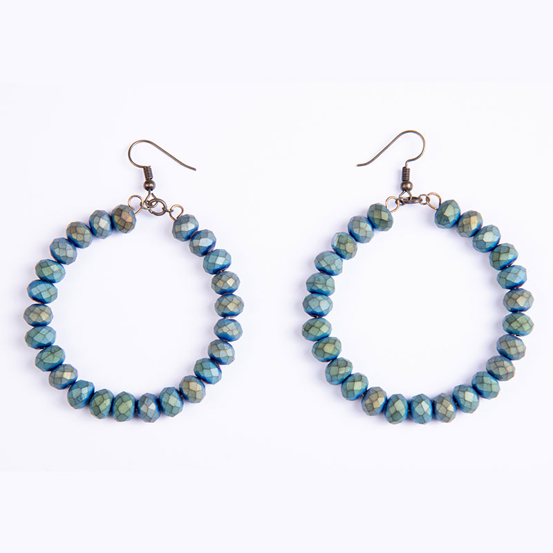 Σκουλαρίκια κρίκοι με κρυστάλλινες χάντρες green gold 8mm, με memory wire, και ορειχάλκινο γαντζάκι copper