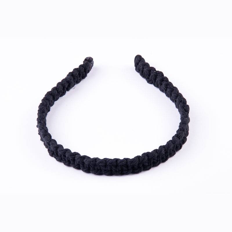 Στέκα μαλλιών με μακραμέ πλέξη και μαύρο βαμβακερό κορδόνι