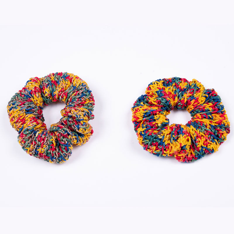 Χειροποίητα πλεκτά scrunchies πολύχρωμο, σετ των 2