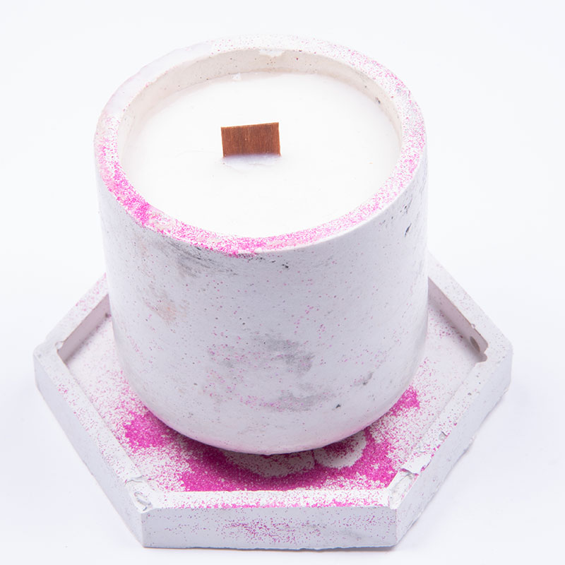 Χειροποίητο αρωματικό κερί σόγιας 100γρ με ξύλινο φυτίλι σε χειροποίητο τσιμεντένιο σκεύος και βάση πολύγωνη
