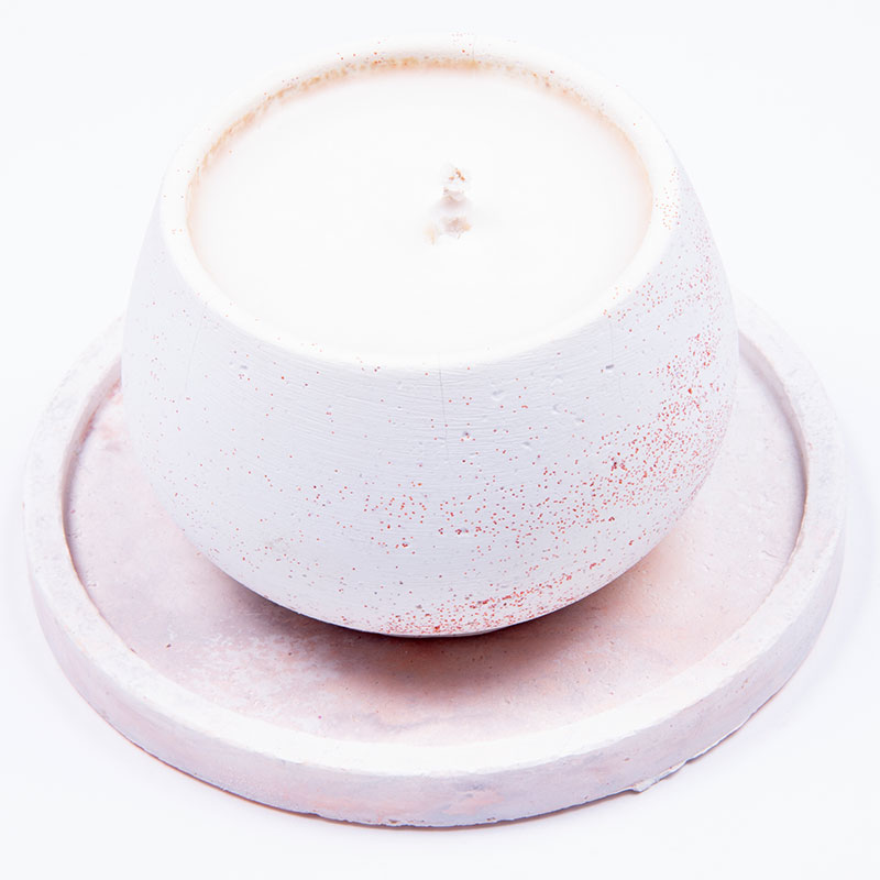 Χειροποίητο αρωματικό κερί σόγιας 100γρ σε χειροποίητο τσιμεντένιο σκεύος και βάση στρόγγυλη