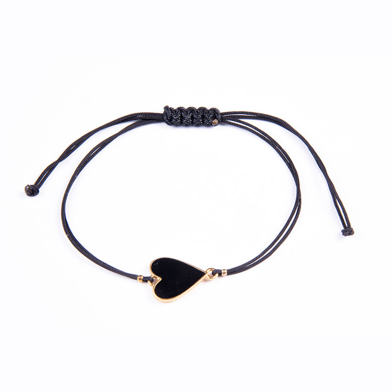 Βραχιόλι με επίχρυσο μοτίφ 24Κ floral καρδιά με μαύρο σμάλτο σε μαύρο κορδόνι με αυξομείωση