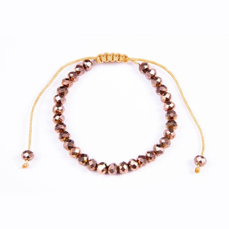 Βραχιόλι με καφέ χρυσό κρυστάλλινες χάντρες 6mm σε μπεζ κορδόνι με αυξομείωση