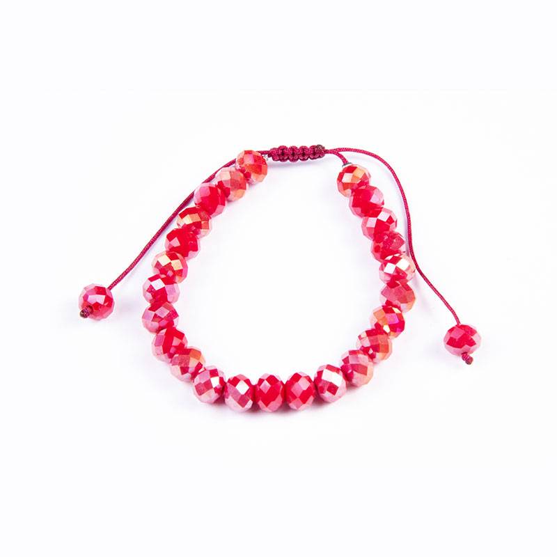 Βραχιόλι με κρυστάλλινες χάντρες, 8mm ruby red σε κερωμένο κορδόνι με αυξομείωση