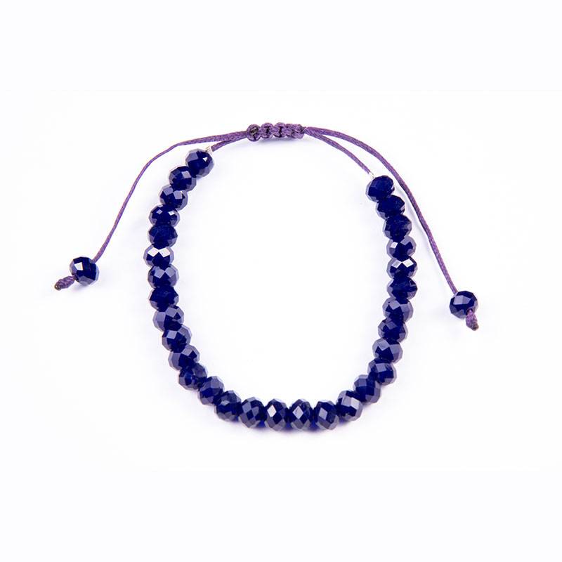 Βραχιόλι με κρυστάλλινες χάντρες, dark blue 6mm σε κερωμένο κορδόνι με αυξομείωση