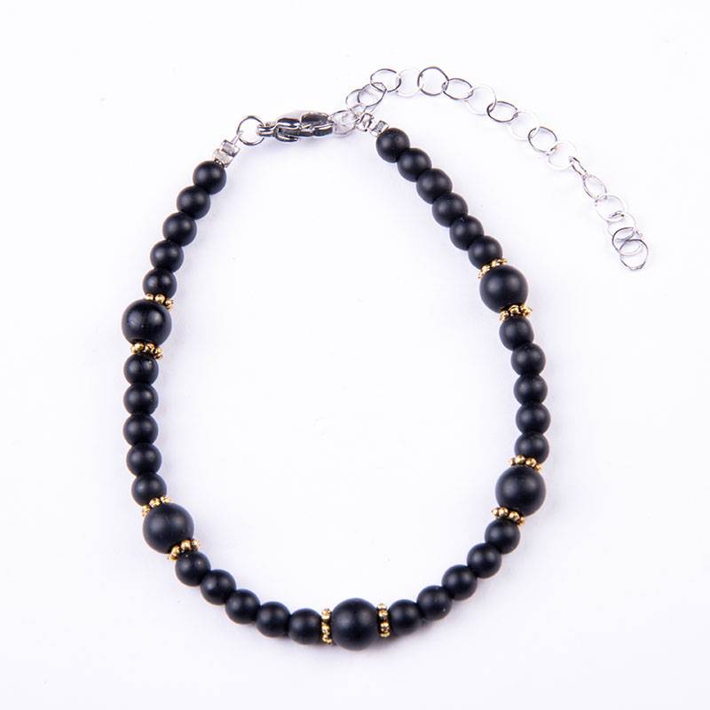 Βραχιόλι με μαύρο όνυχα 6 και 4mm, ενδιάμεσα μεταλλικές ροδέλες σε χρυσό και ατσάλινο κούμπωμα