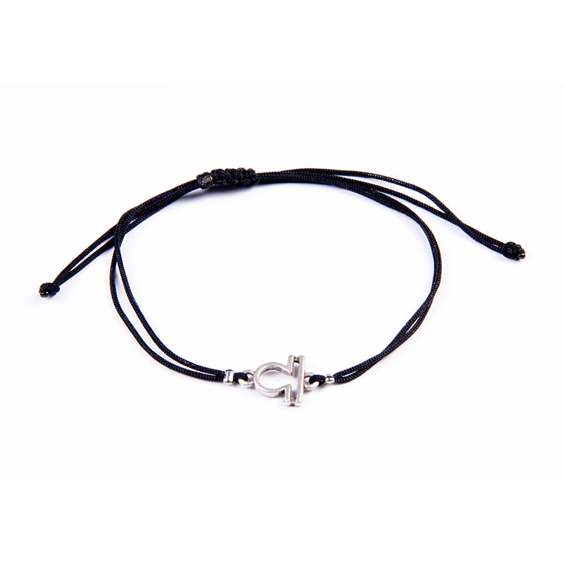 Μίνιμαλ βραχιόλι με μαύρο κορδόνι, επάργυρο μοτίφ ζώδιο "Ζυγός" με αυξομείωση