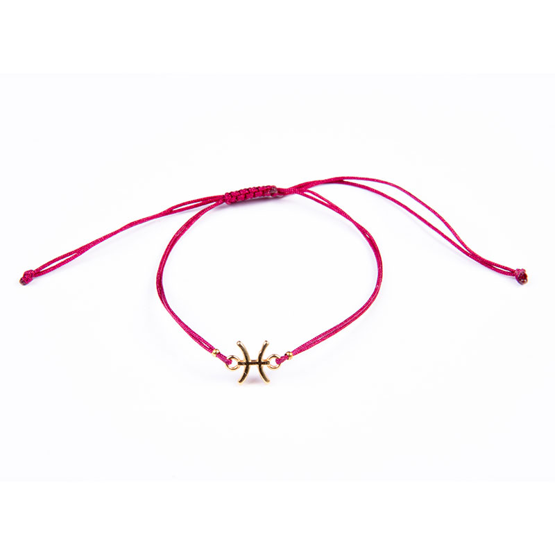 Μίνιμαλ βραχιόλι με μπορντώ κορδόνι, επίχρυσο 24Κ μοτίφ ζώδιο "Ιχθείς" με αυξομείωση