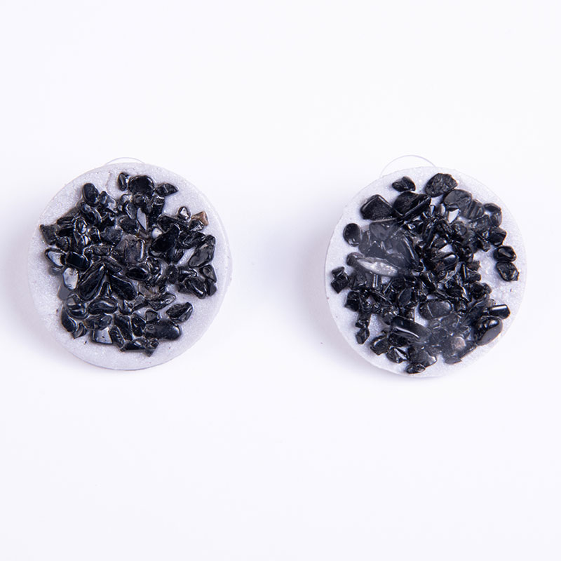 Σκουλαρίκια από πολυμερικό πηλό γκρι στρόγγυλο με ημιπολύτιμες πέτρες τσιπς μαύρο αχάτη και ατσάλινο καρφάκι