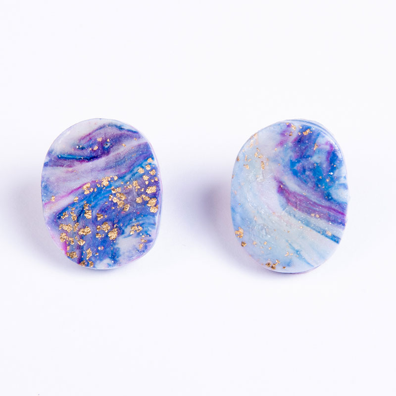Σκουλαρίκια από πολυμερικό πηλό μικρό οβάλ studs "summer sky" series, με φύλλο χρυσού και ατσάλινο καρφάκι