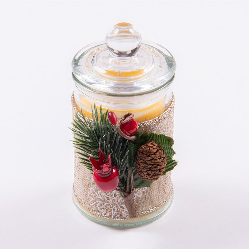 Γυάλινο στρογγυλό βάζο με αρωματικό κερί μέλισσας χειροποίητο με άρωμα μήλο κανέλλα