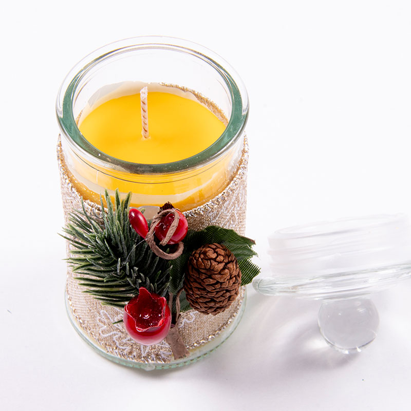 Γυάλινο στρογγυλό βάζο με αρωματικό κερί μέλισσας χειροποίητο