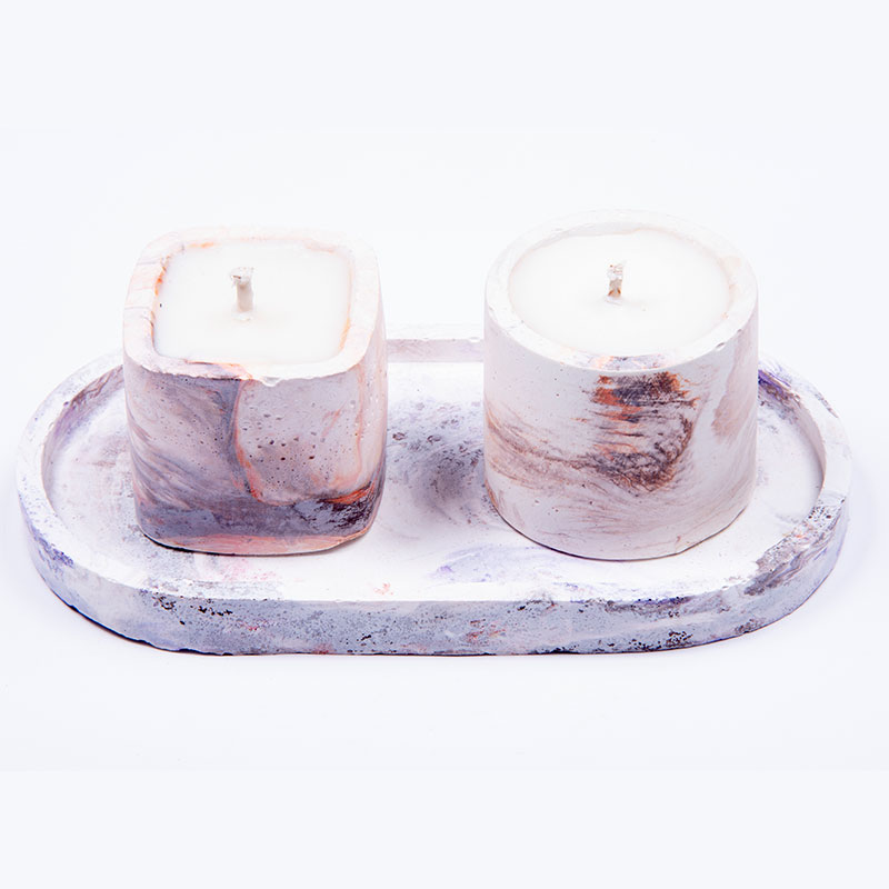 Χειροποίητα αρωματικά κεριά σόγιας 50γρ σε στρόγγυλο και τετράγωνο χειροποίητο τσιμεντένιο σκεύος και βάση οβάλ