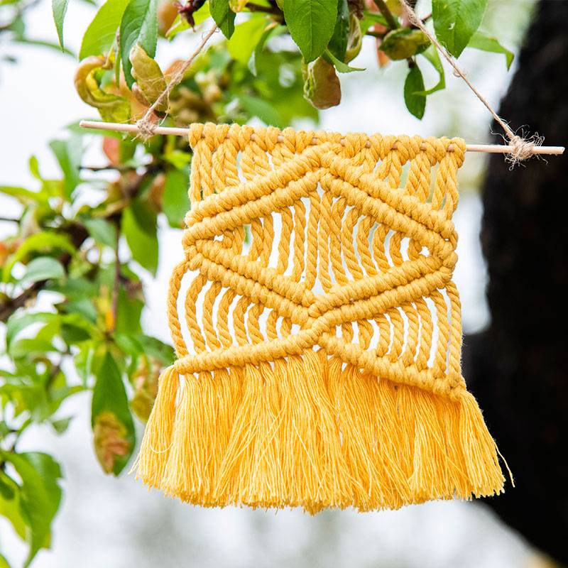 Διακοσμητικό μίνι μακραμέ με ώχρα βαμβακερό κορδόνι