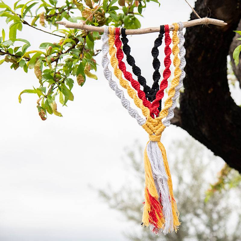 Διακοσμητικό μακραμέ με ώχρα-γκρι-μαύρο-κόκκινο βαμβακερό κορδόνι V-shape tassel