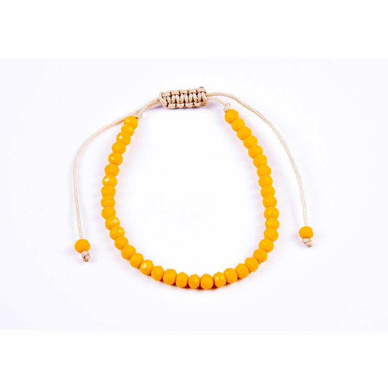 Βραχιόλι με κρυστάλλινες χάντρες 4mm κίτρινες σε μπεζ κορδόνι με αυξομείωση