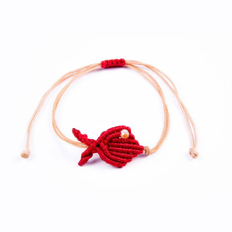 Βραχιόλι ψαράκι μακραμέ κόκκινο με κρυστάλλινη χάντρα σε κερωμένο κορδόνι, με αυξομείωση
