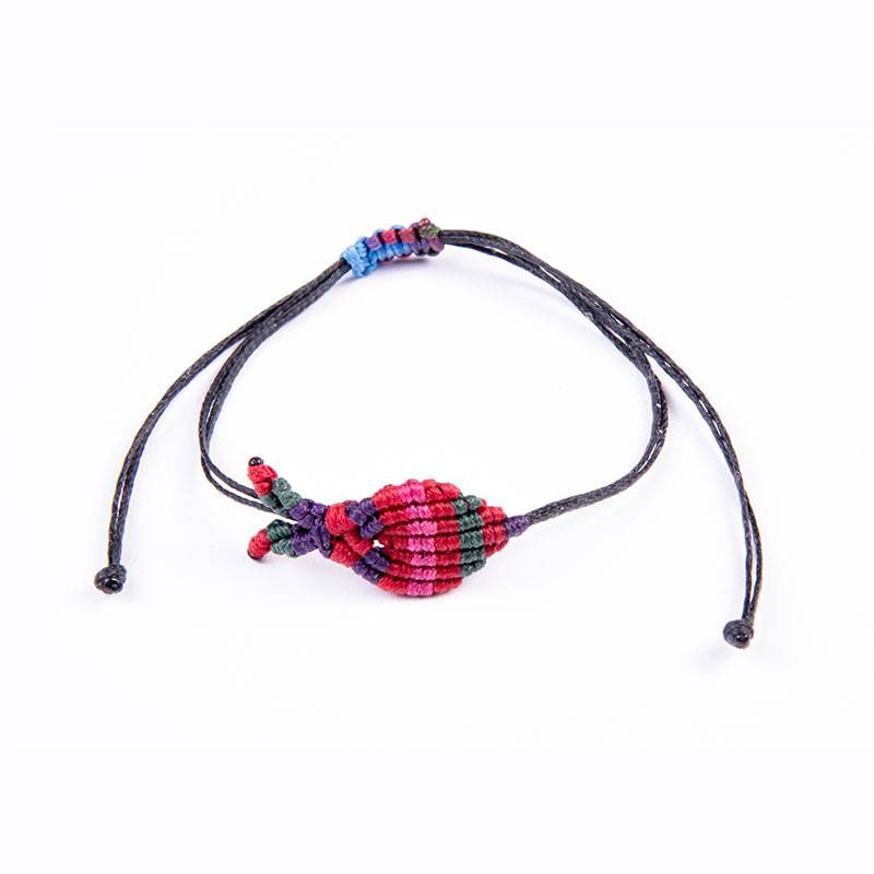 Βραχιόλι ψαράκι μακραμέ κόκκινο-ροζ-μπλε σε κερωμένο κορδόνι, με αυξομείωση