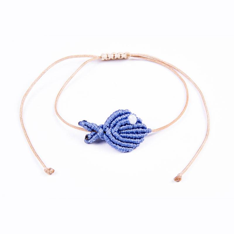 Βραχιόλι ψαράκι μακραμέ navy blue με κρυστάλλινη χάντρα σε κερωμένο κορδόνι, με αυξομείωση