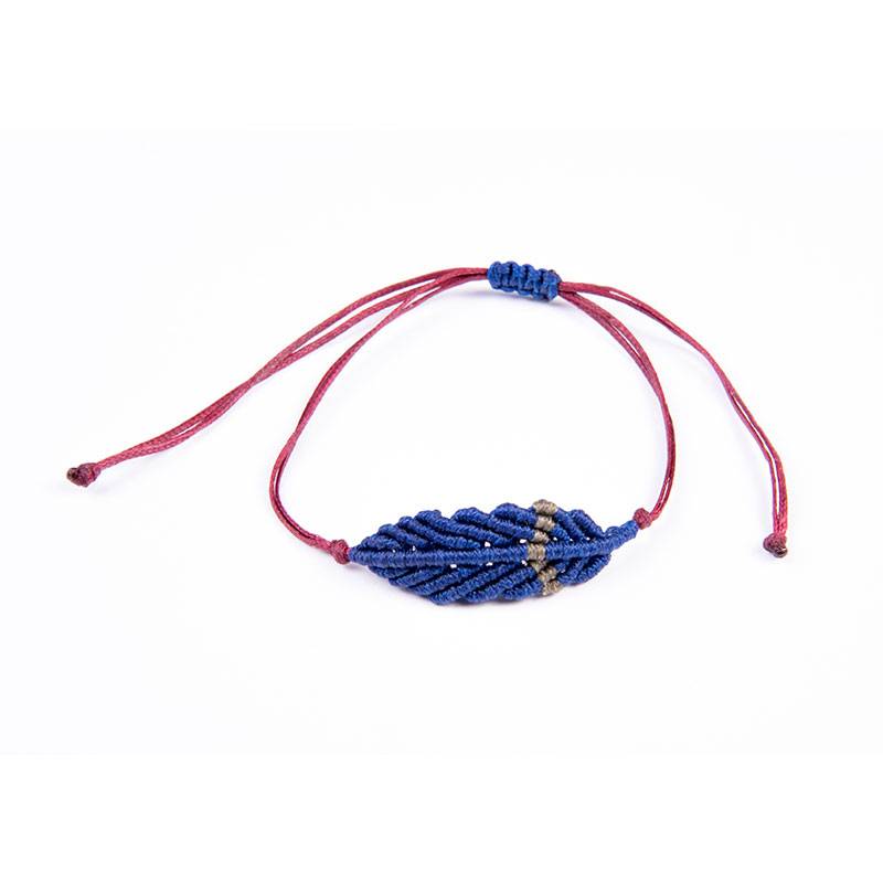 Βραχιόλι μακραμέ "feather" royal blue-χακί σε κορδόνι με αυξομείωση