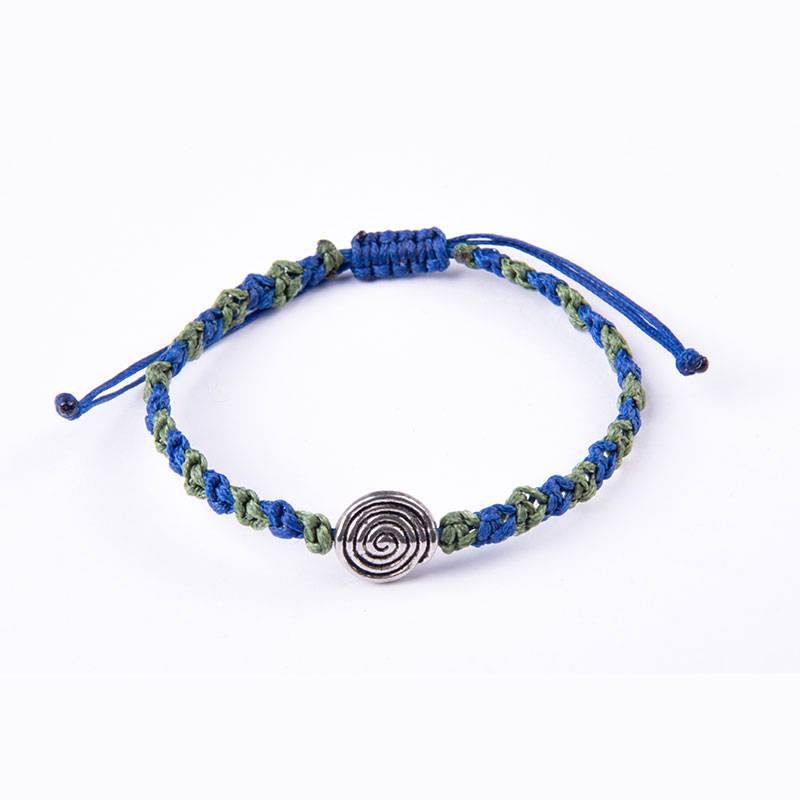 Βραχιόλι μακραμέ με μπλε και πράσινο κερωμένο κορδόνι με μεταλλικό στοιχείο σπείρα, με αυξομείωση