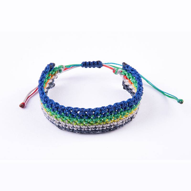 Βραχιόλι μακραμέ με μπλε μούλτι-γκρι-πράσινο κερωμένα κορδόνια, κλείνει με αυξομείωση
