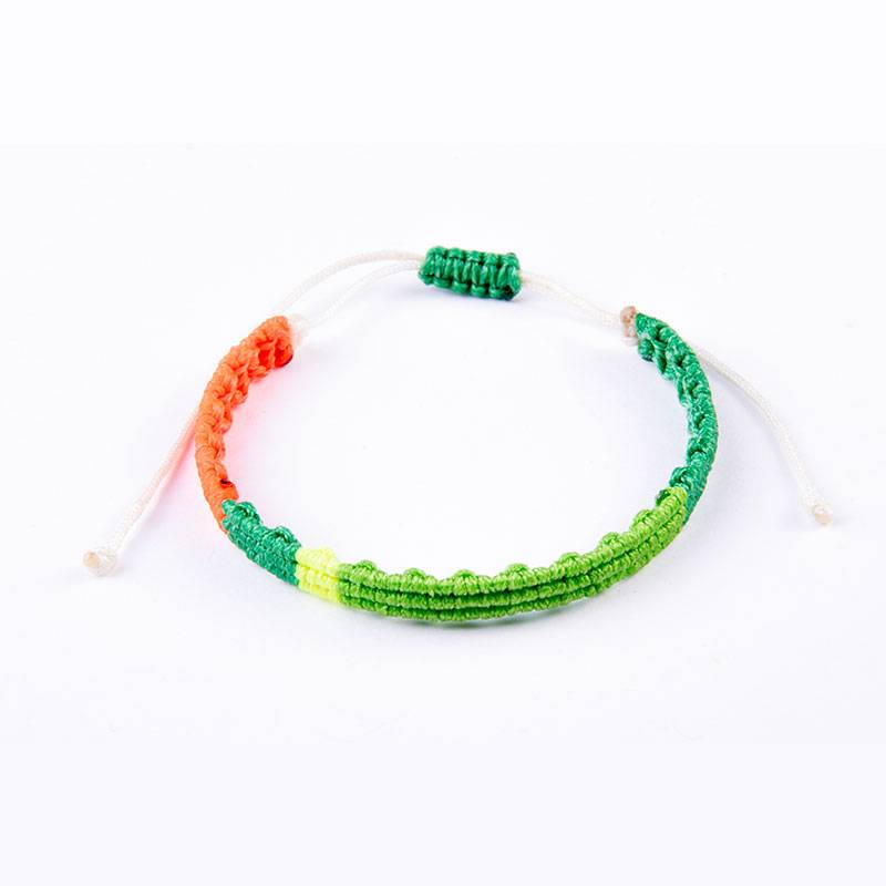 Βραχιόλι μακραμέ με πράσινο, πορτοκαλί φλούο πράσινο κερωμένο κορδόνι, κλείνει με αυξομείωση