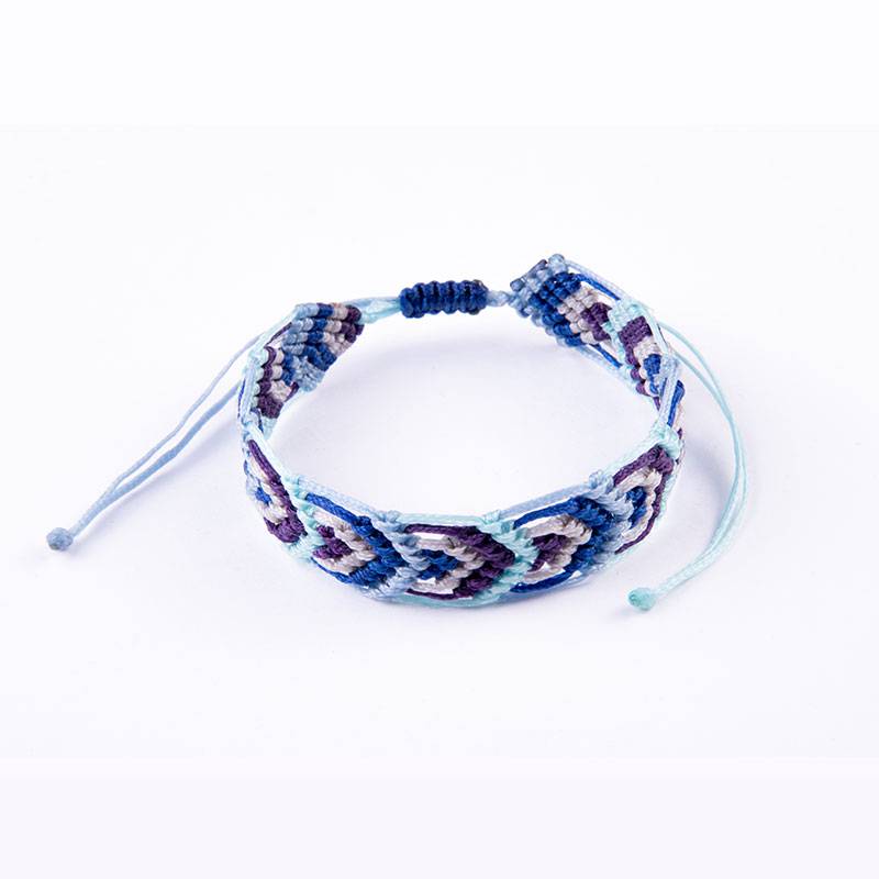 Βραχιόλι μακραμέ arrow σε μπλε αποχρώσεις με κερωμένα κορδόνια, κλείνει με αυξομείωση