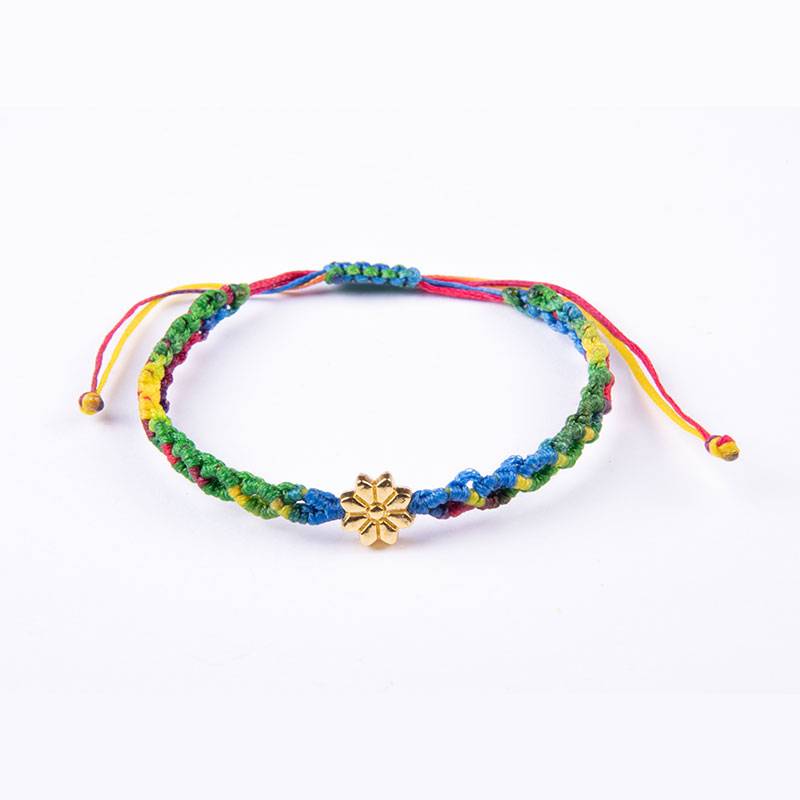 Βραχιόλι μακραμέ infinity με μεταλλικό στοιχείο λουλούδι, με κερωμένο κορδόνι multicolor, με αυξομείωση