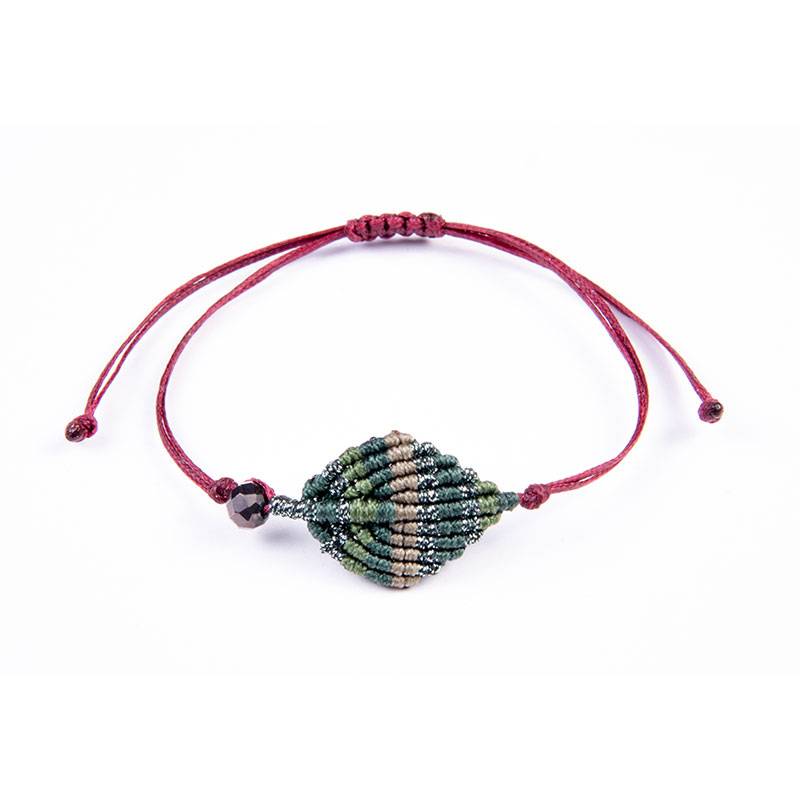 Βραχιόλι μακραμέ "leaf" πράσινο με κρυστάλλινη χάντρα bronze 6mm σε κορδόνι με αυξομείωση
